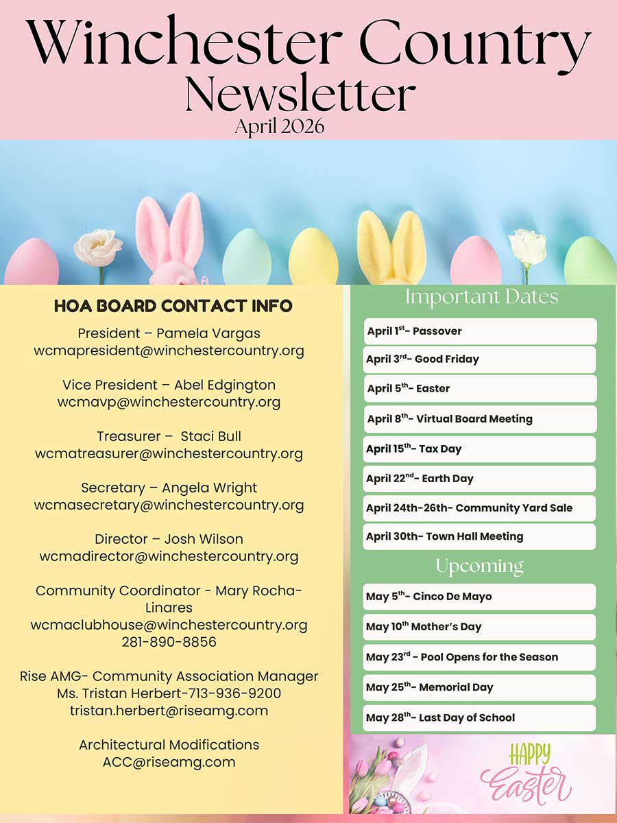 Newsletters are an important way to know what is going on in the Association along with the surrounding neighborhoods.